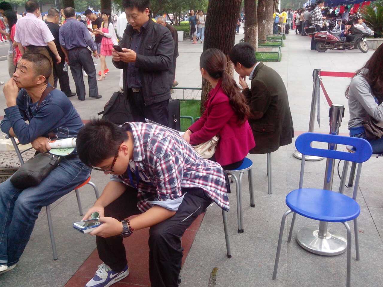 迎新点设立的家长休息区中,家长们都在坐着休息,他们在等待自己孩子的同时,也不时地向志愿者们询问学院相关情况,志愿者们都详细地一一解答,以便让家长对经典三级