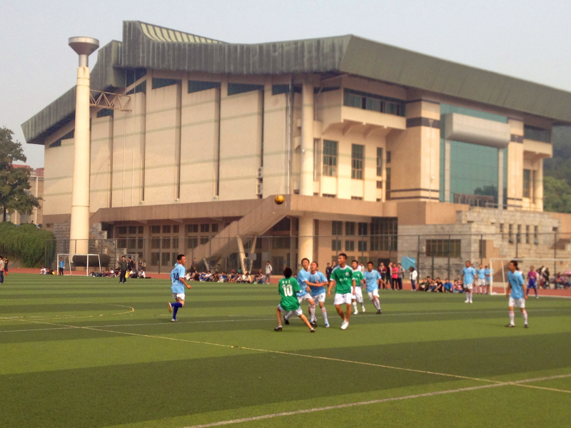 球员则凭借稳定沉着的发挥和有效的防守,一次次化解了对方球员的进攻,并多次发动反攻,一次次将战线推入对方禁区之内。接近终场,文学院的球员一个射门得分使得全场的气氛再次迅速紧张起来,最后的十分钟,双方进行了激烈的拼抢,但是两院球员实力在伯仲之间,一时难分胜负,最后比分定格在了1:1。