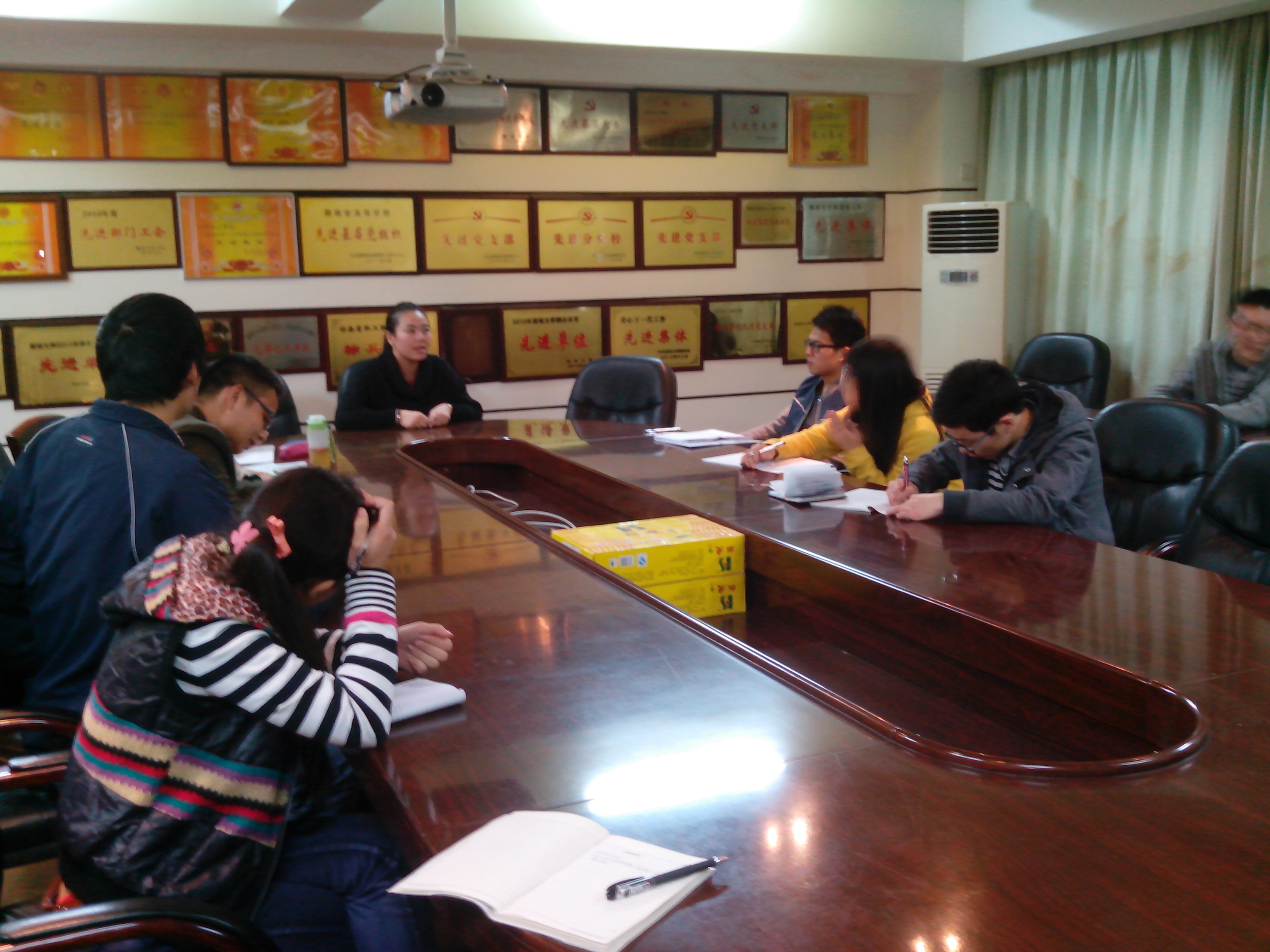 学生党支部全体成员在新化工楼D区204会议室召开例会,会议由学工办党建兼干辅导员曾芷兰老师主持。会议主要讨论了关于党的十八届三中全会精神学习交流活动的开展,并对各支部书记就支部日常工作的开展进行了培训。