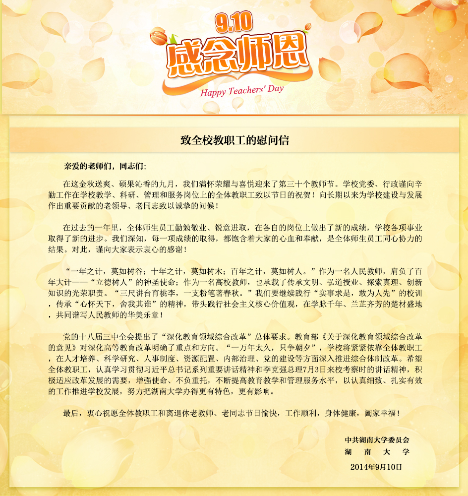 学校致全校教职工的慰问信