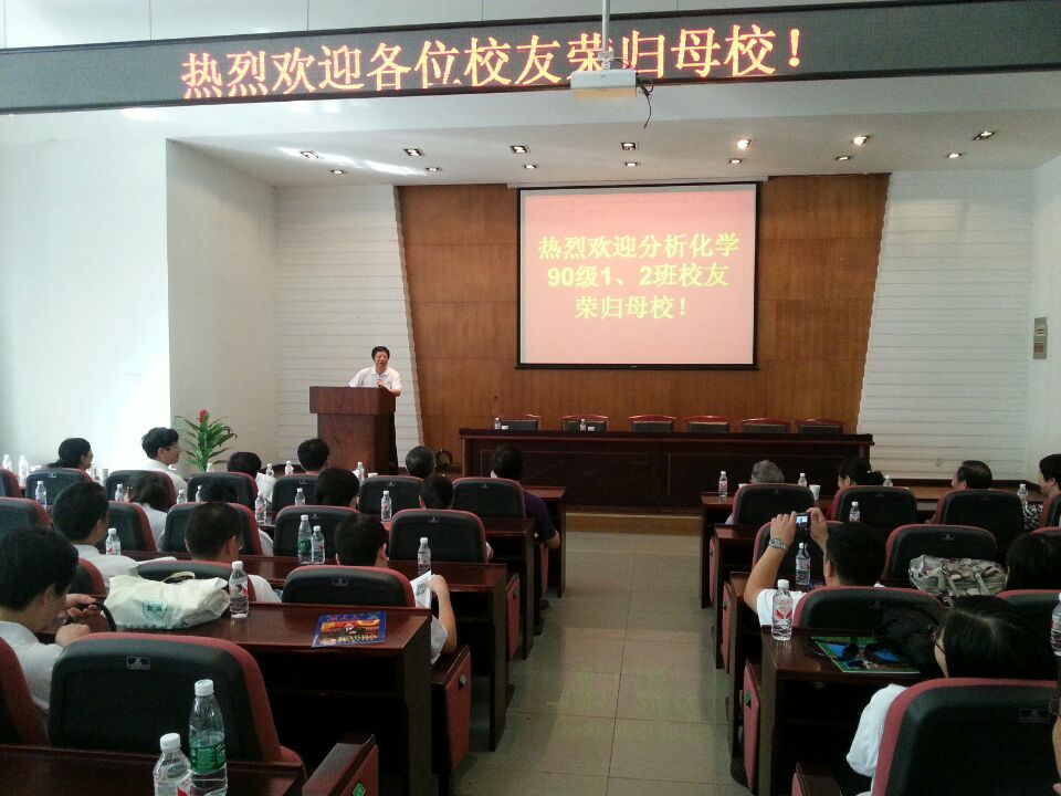 90级分析化学1、2班优秀校友齐聚院报告厅,举行校友回归会,大家时隔二十四年再聚首。化工院院长蒋健晖,院党委书记王玉枝,原经典三级