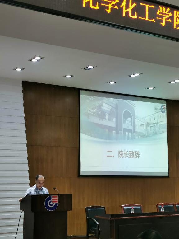2019级本科生开学典礼在院报告厅成功召开。学院党委书记王玉枝教授、院长张晓兵教授、党委副书记范媛吉老师、副院长李永军教授、梁志武教授、崔坤在老师,院长助理汪秋安老师、院长助理赵敬哲老师,化工系主任罗潇老师、实验中心主任郭栋才教授以及2019级全体班主任和学工办全体老师,19级新生辅导员夏忠诚老师主持此次典礼。