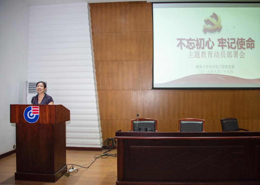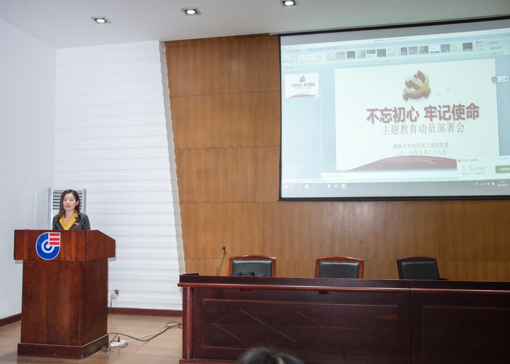 在新化工楼D区报告厅召开了“不忘初心、牢记使命”主题教育动员部署会,对学院主题教育进行了全面动员和具体部署。学院党委书记王玉枝同志作了动员部署讲话,学校主题教育第一督查指导组成员、校团委书记彭嘉芬同志出席会议并讲话,学院院长张晓兵同志主持会议。学院领导班子成员、党委委员、全体教工党员、离退休党支部部部分党员和学生党支部书记参加会议。