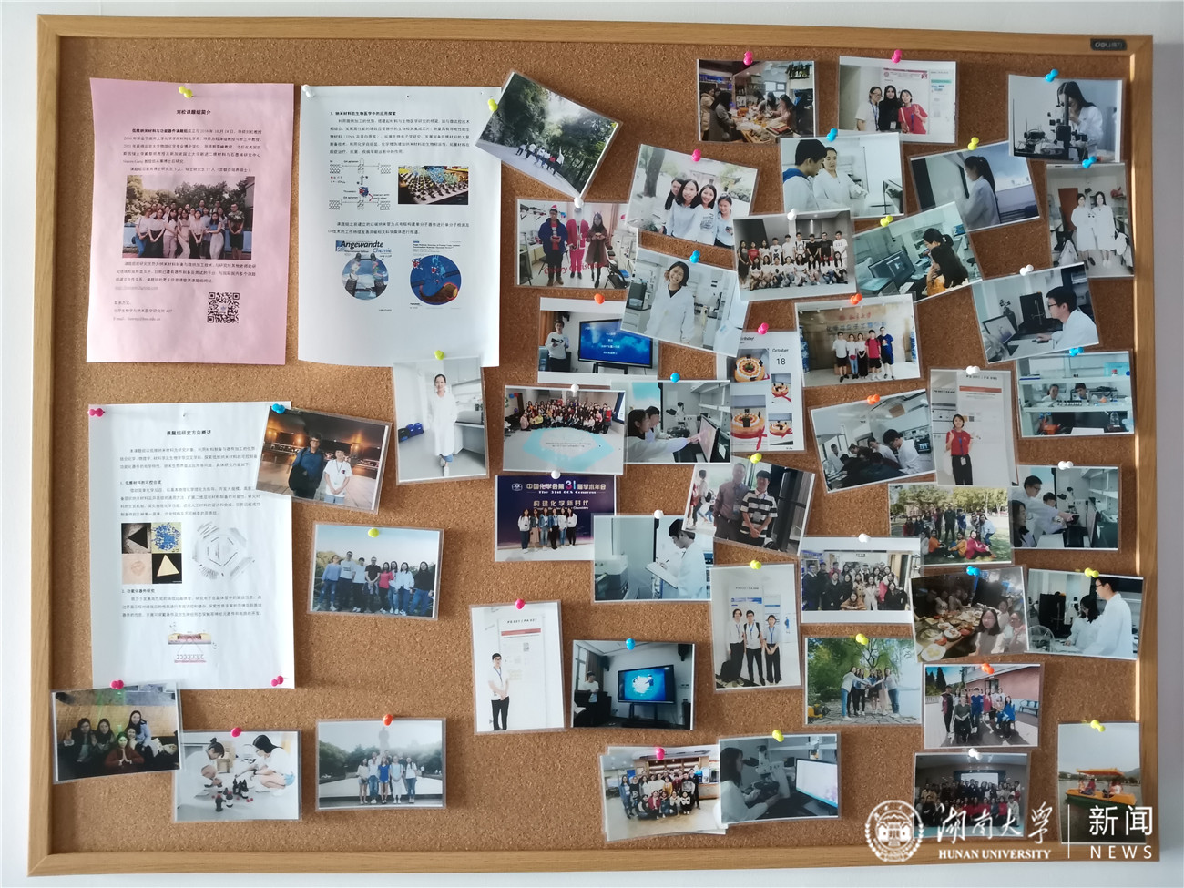 刘松实验室的照片墙。