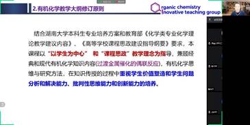 4月8日晚,有机化学与实验基层教学组织——有机化学与实验创新教学团队(Organic Chemistry Innovative Teaching Group, OCITG)进行了这学期首次教学研讨会议。李永军副院长对有机化学与实验创新教学团队的工作做了指导性发言,建议加强课程的系统性建设、创新教学模式、厚实课程思政建设。本团队19位教师通过腾讯会议参加了线上讨论,会议由有机化学课程负责人刘强教授主持,有机化学实验课程负责人刘劼教授也参与了研讨。