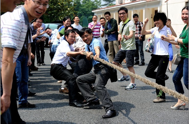 在第二阶段的团队互动活动中,进行了拔河比赛、车轮滚滚向前冲等丰富多彩的活动。在活动中,老师们相互交流、相互协作,为了团队和单位的荣誉而奋力拼搏。这些活动增强了党员之间、党员和群众之间以及全院老师之间相互交流、相互协作,增强了学院的凝聚力。
