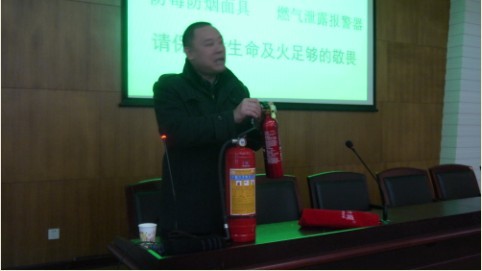 主讲人从不久前的小悦悦事件说起,并谈及上海高校的火灾悲剧,指出我们的身边时刻存在安全隐患。他还强调了防范于未然在生活中的必要性。紧接着,从“防火知识、防火意识、防火工具”三方面作了深入浅出的讲解。老师还给大家现场演示了灭火器的使用方法。在提问环节中,老师对大家热情的提问一一做了详细解答。。