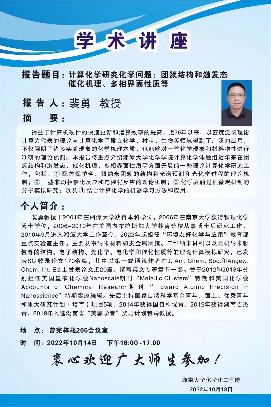 2022年10月14日湘潭大学裴勇教授学术报告会