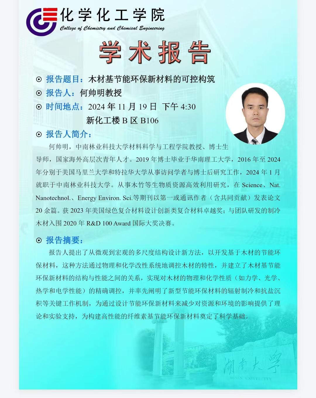 2024年11月19日中南林业科技大学何帅明学术报告会
