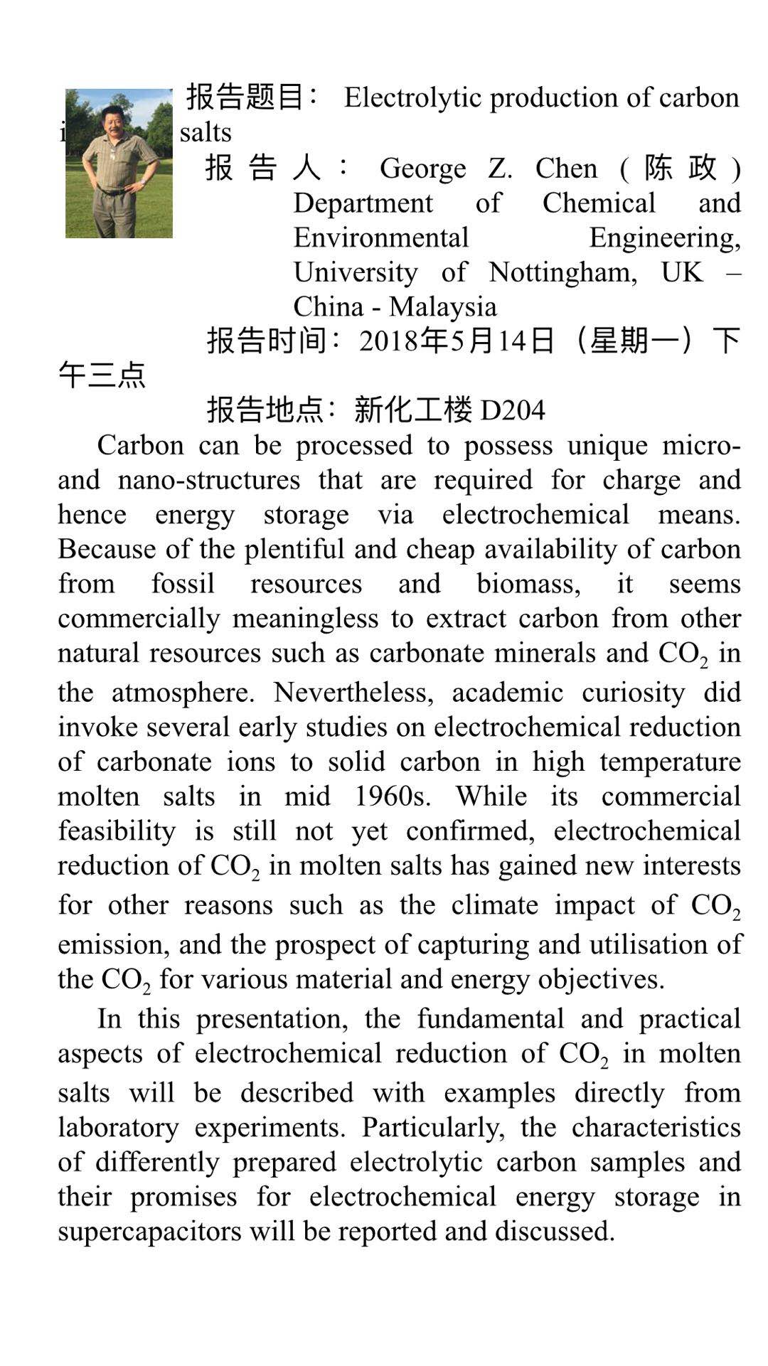 2018年5月14日诺丁汉大学陈政教授学术报告会