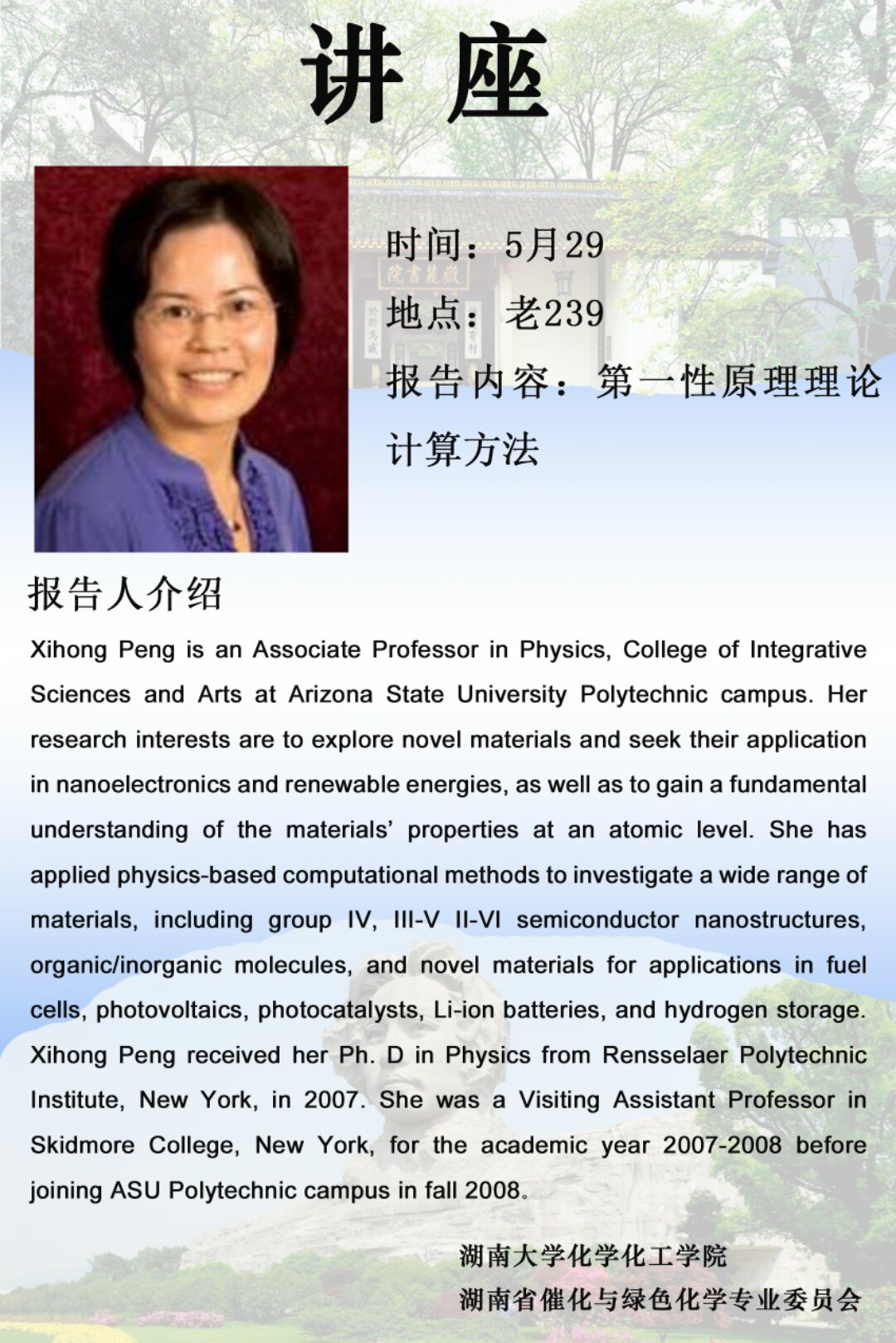 2019年5月29日亚利桑那州立大学Peng Xihong 副教授学术报告会