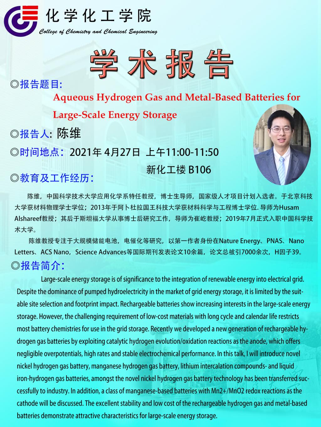 20201年4月27日中国科学技术大学陈维教授学术报告会